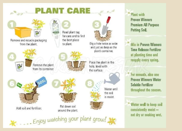 Plant once, enjoy multi-year growth. Leaves and blooms return each spring and summer, with golden foliage in fall, offering seasonal beauty year after year.